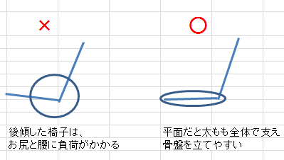 ・座面は柔らかいより固めの方が良い。クッション型は結果的に後傾姿勢になりやすい。