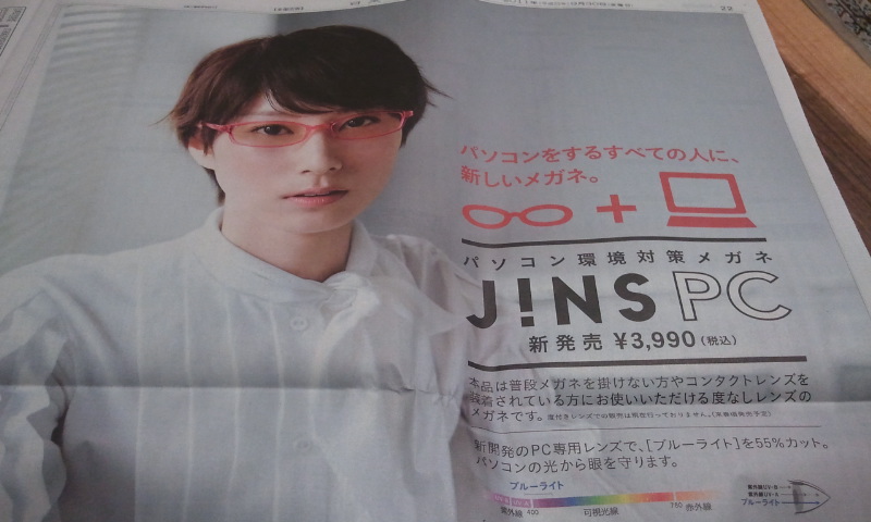 JINS広告のパソコン環境対策メガネ「JINS PC」